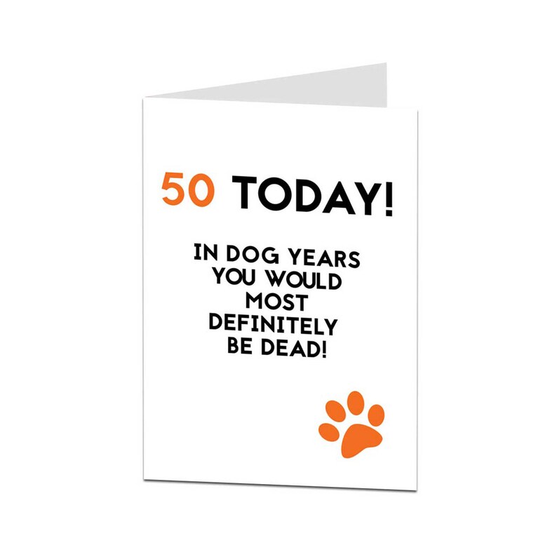 As he goes through the door, a slight chime sounds. Turning 50 is a milestone in anyone's life, so it should be celebrated in a great way and this occasion is a good excuse for a laugh too. A great 50th birthday card printed on 100lb white matte cardstock. Are you looking for some funny 50th birthday jokes, then you are in the right place. I love these 'cause they're toned down a bit and can be the funniest of them all!